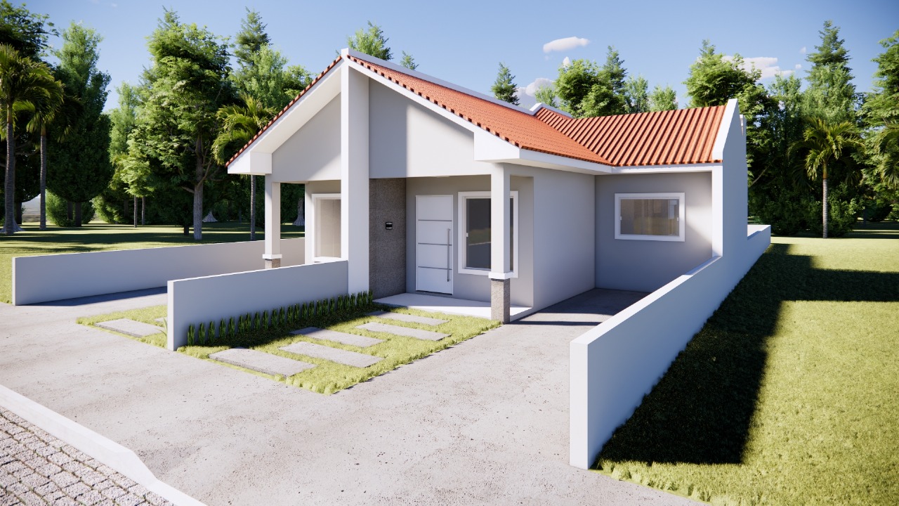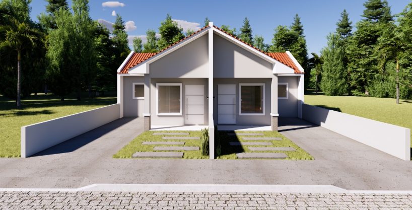 São casas geminadas na planta, com 69,96m², pátio na frente e nos fundos, projeto moderno e pensado para o conforto da sua família. ✨